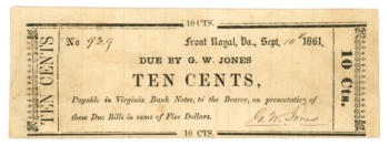 1861 GW Jones Front Royal Virginia VA 10c Obsolete Scrip (65059)