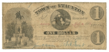 1861 Town of Staunton Virginia VA $1 Obsolete Note No.2238 (65063)