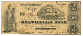 1861 Monticello Bank Charlottesville Virginia VA $2 Obsolete VA45-G14 (65591)