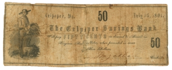 1861 Culpeper Savings Bank Culpeper Virginia VA 50c Scrip JL-BC50-50 (65668)