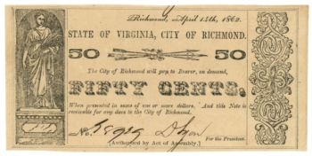 1862 City of Richmond, Virginia 50c Obsolete Note (62165)
