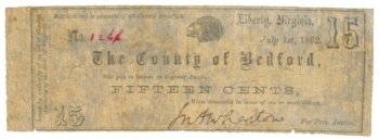 1862 County of Bedford 15 cents Liberty Virginia (L4240)