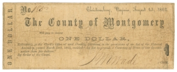 1861 County of Rockingham Harrisonburg Virginia VA $1 Obsolete Civil War Era