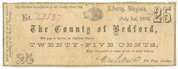 1862 County of Bedford Virginia 25Cents VA (L4252)
