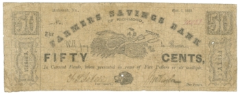 1861 Farmers Savings Bank of Richmond, Virginia 50c Obsolete Note (L1824)