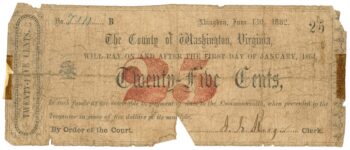 1862 County of Washington, Abingdon, Virginia 25c Obsolete Note No.7111 (60009)