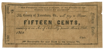 1862 County of Lunenburg, Virginia 15c Obsolete Note C4983 (62154)