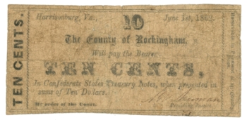 1862 County of Rockingham, Harrisonburg, Virginia 10c Obsolete Note (62159)