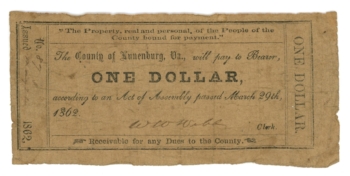 1862 County of Lunenburg Virginia $1 VA (L4417)