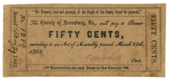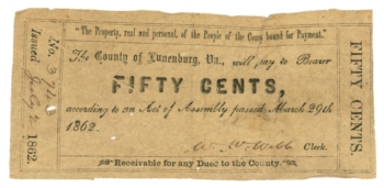1862 County of Lunenburg Virginia VA 50c Obsolete Note No.1289 (64558)