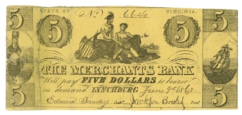 1862 Merchants Bank Lynchburg Virginia VA $5 Obsolete Note CTFT (64734)
