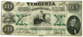 1862 Virginia Treasury Note $10 VA CR-8 (L2745)