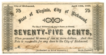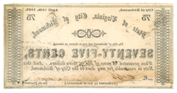 1862 State of Virginia VA City of Rich. 75c (L2736)