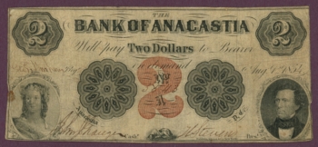 1854 Bank of Anacastia, Washington D.C. $2 Obsolete Note No.3543 35-G4A (60303)