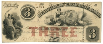 1854 Merchants’ Exchange Bank, Anacastia, Washington D.C. $3 Note (L1149)