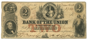 1854 Bank of the Union, Washington D.C. $2 Obsolete Note No.3700 (L1148)