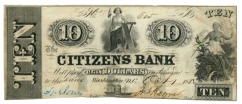 1852 Citizens Bank, Washington D.C. $10 Obsolete Note No.605 (L1876)