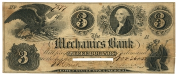 1852 Mechanics Bank Georgetown Washington D.C. $3 Obsolete Note (63993)
