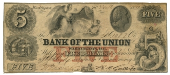 1851 Bank of the Union Washington DC $5 Obsolete Note (64853)