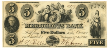 1852 Merchants Bank Washington DC $5 Obsolete Note DC275-G6 (65789)
