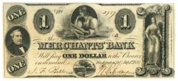 1852 Merchants Bank Washington DC $1 Obsolete Note (65798)