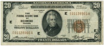 1929 $20 Federal Reserve Bank of Richmond Virginia (L0852)