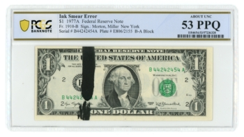 1977A $1 FRN FR-1910-B Ink Smear Error PCGS AU53 PPQ (L6235)