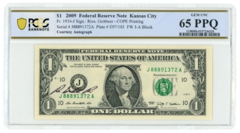2009 $1 FRN Kansas City FR-1934-J PCGS 65PPQ (L6240)