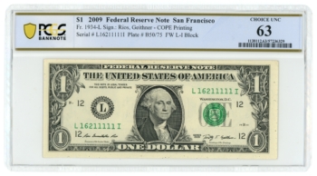2009 $1 FRN San Francisco FR-1934-L PCGS UNC63 (L6243)