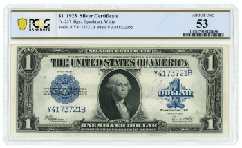 Series 1923 $1 Large Size Silver Certificate FR-237 PCGS AU 53 (66235)
