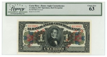 1917 SCWPM#S121s3 Specimen Banco Anglo Costarricense Costa Rica 1 Colon (L5329)