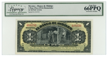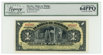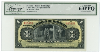1914 banco de Hidalgo 1 Peso Mexico Remainder LCG 64PPQ (L6347)