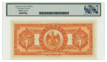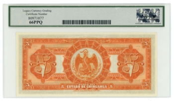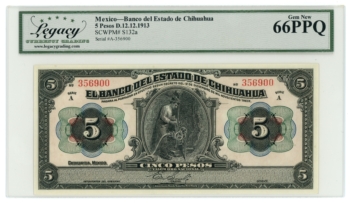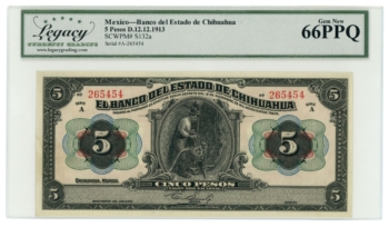 1913 Banco del Estado de Chihuahua 5 Pesos Mexico LCG Gem 67PPQ (L6314)