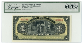 1914 Banco de Hidalgo 1 Peso Mexico LCG 64PPQ (L6346)