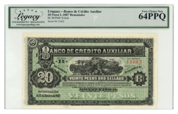 1887 Banco Credito Auxiliar Uruguay 20 Pesos Legacy 64PPQ (L5312)