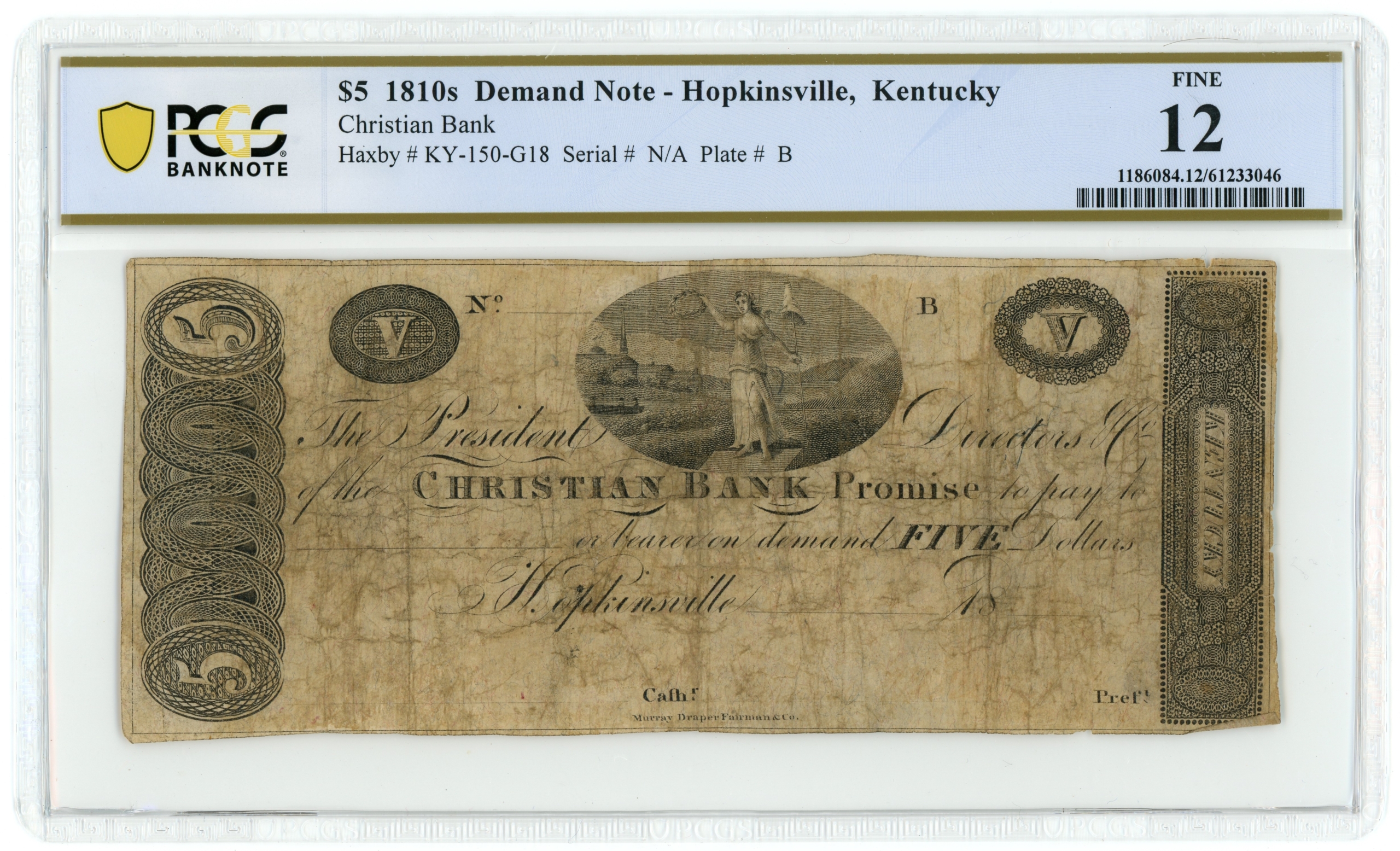 Haxby KY150-G18. Demand note. Stains notated on the back of the holder.