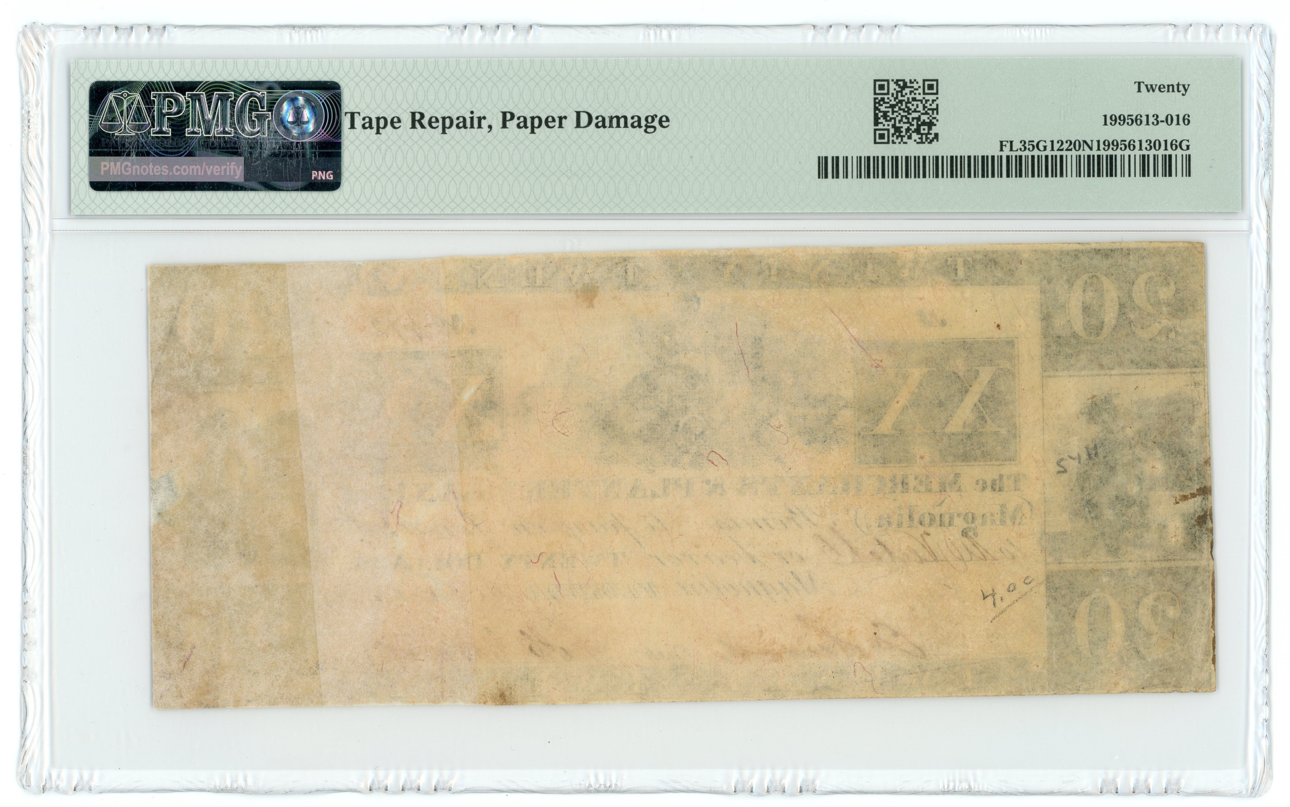 Benice 6 (Rarity 6). Tape repair & paper damage notated on the back of the holder.