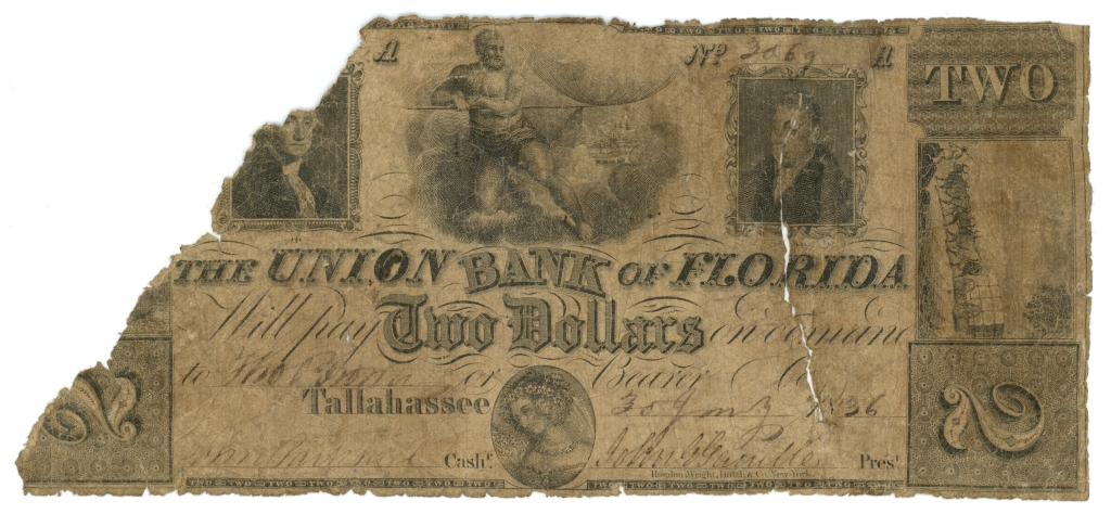 1836 Union Bank of Florida Tallahassee FL $2 Obsolete Note B-54 R7 (66035)