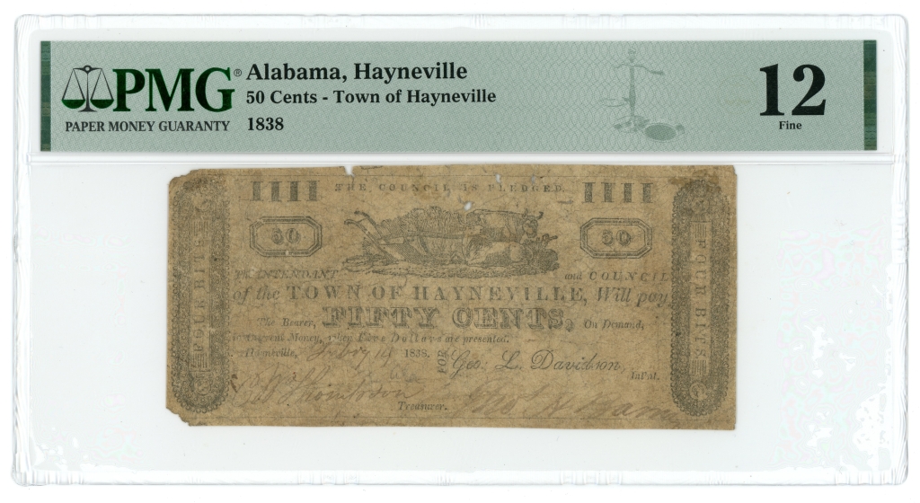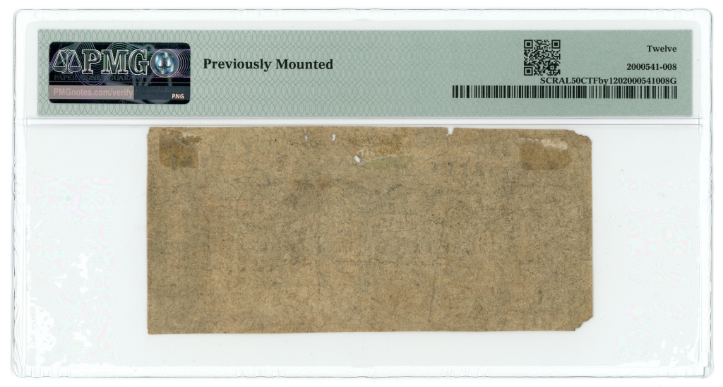 AO237-$.50a (Rarity 7). Gunther-Derby Plate Note. Rosene 123-1. Previously mounted. Note has holes.
