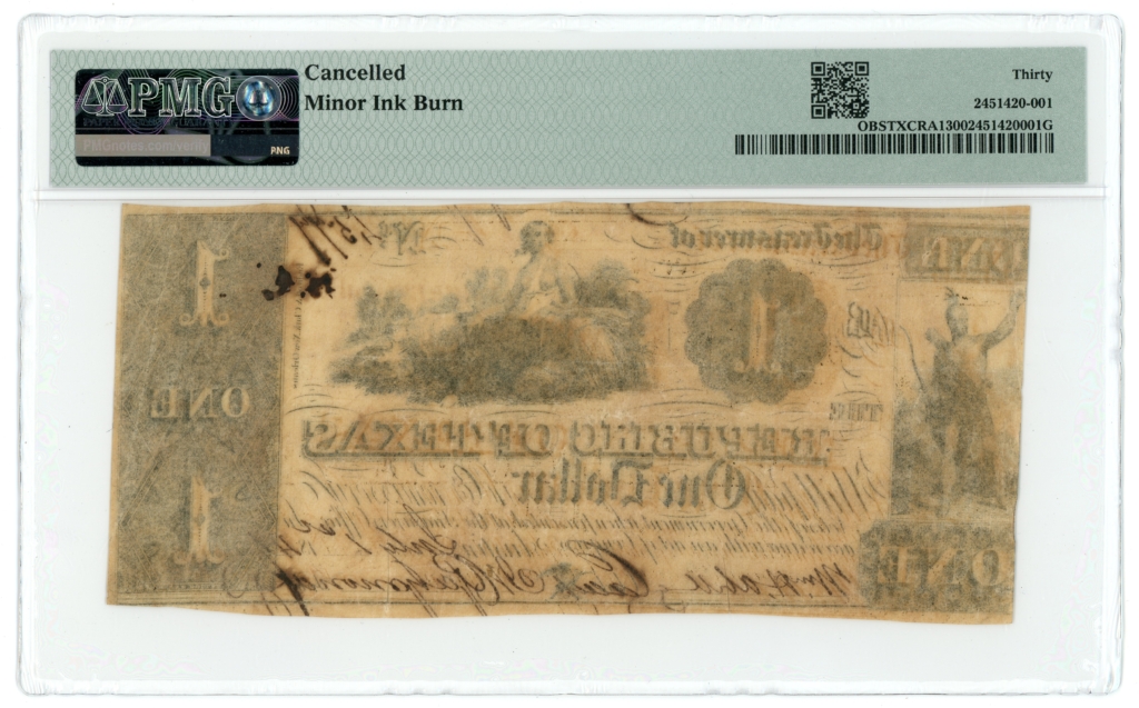 Criswell A1. Note is canceled and has minor ink burn as attributed on the holder.
