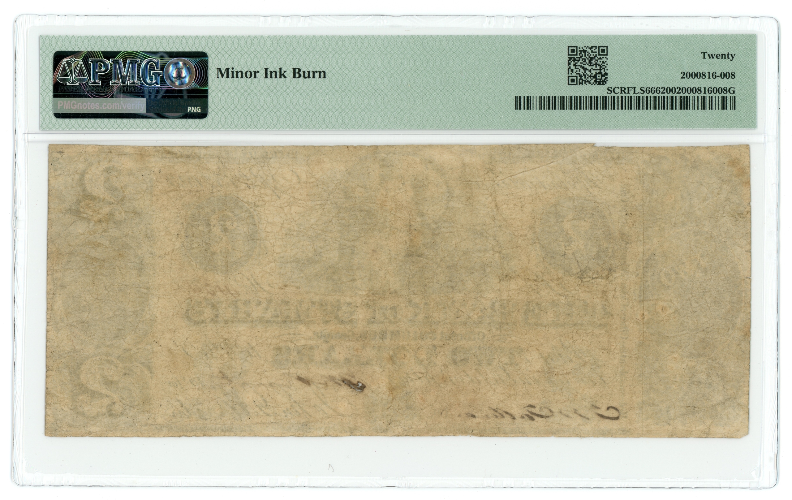 John G. Winter (Apalachicola, FL) at Bank of St. Marys Office in Columbus, GA. Benice 36 (Rarity 7). Minor ink burn notated on the back of the holder. Two small slits in the left middle margin. Minor gutter fold in top margin.