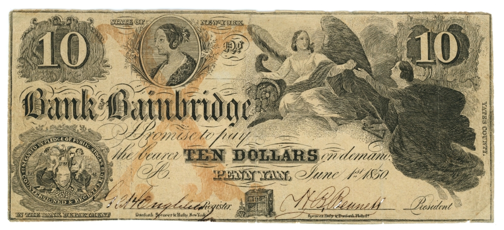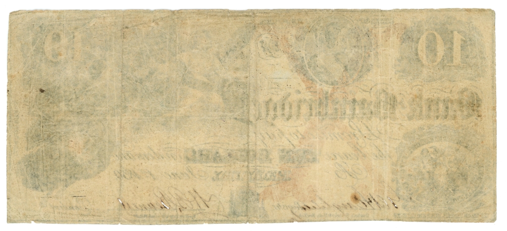 Haxby NY210-C20a. Ink erosion. Area of thin paper near the middle of the note.