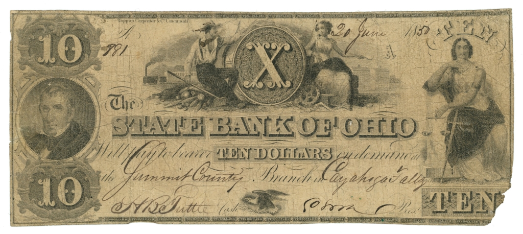 1850 State Bank of Ohio Summit County Branch Cuyahoga Falls OH $10 Obsolete CTFT