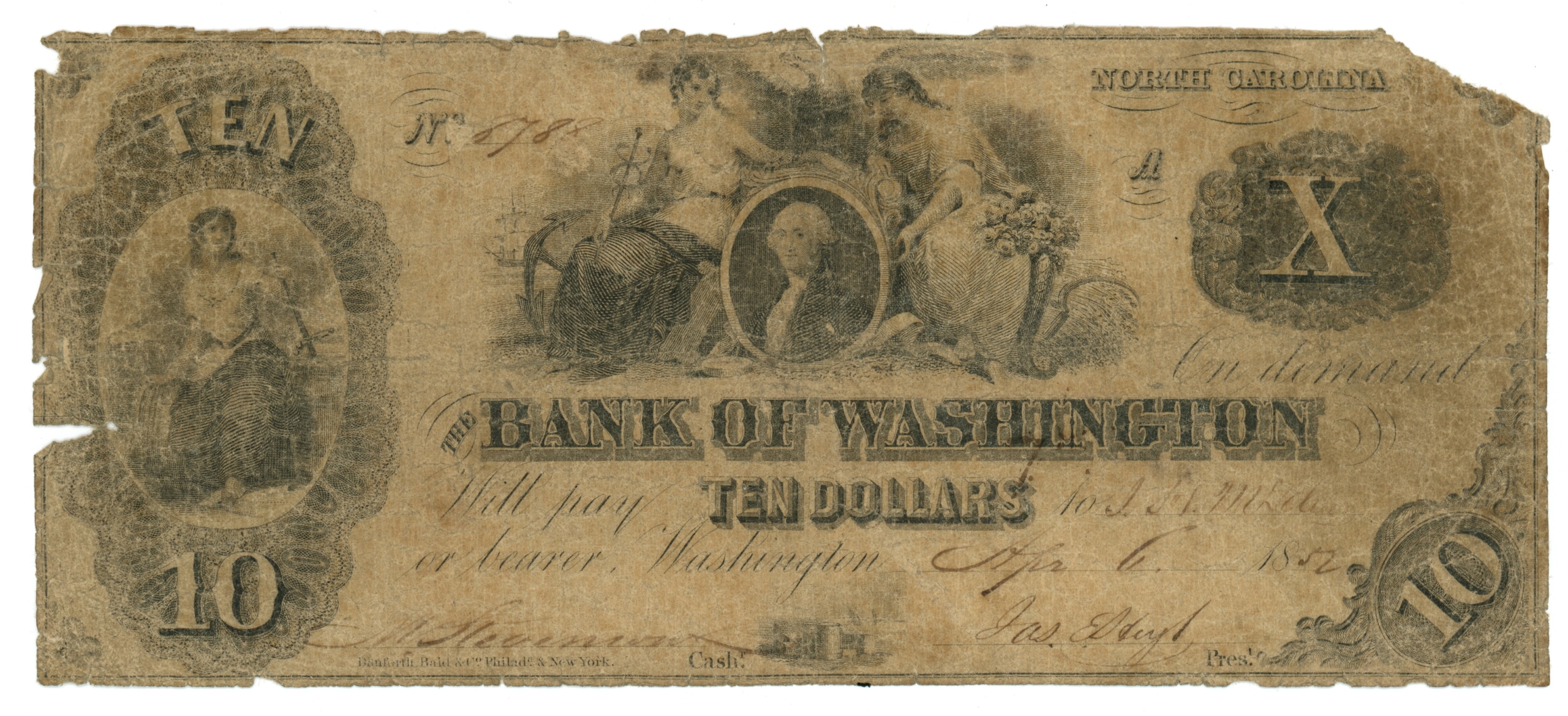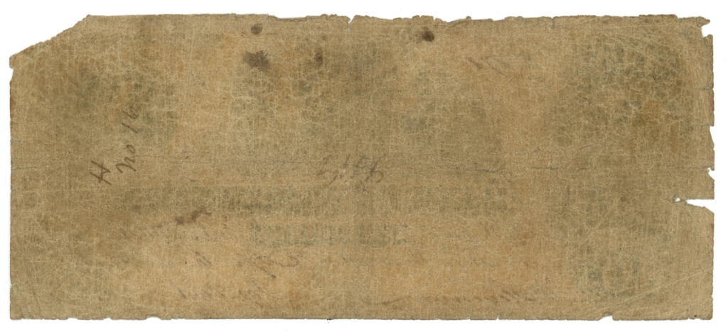 Top right corner missing. Larger tear in the left margin. Note has edge tears and pinholes.
