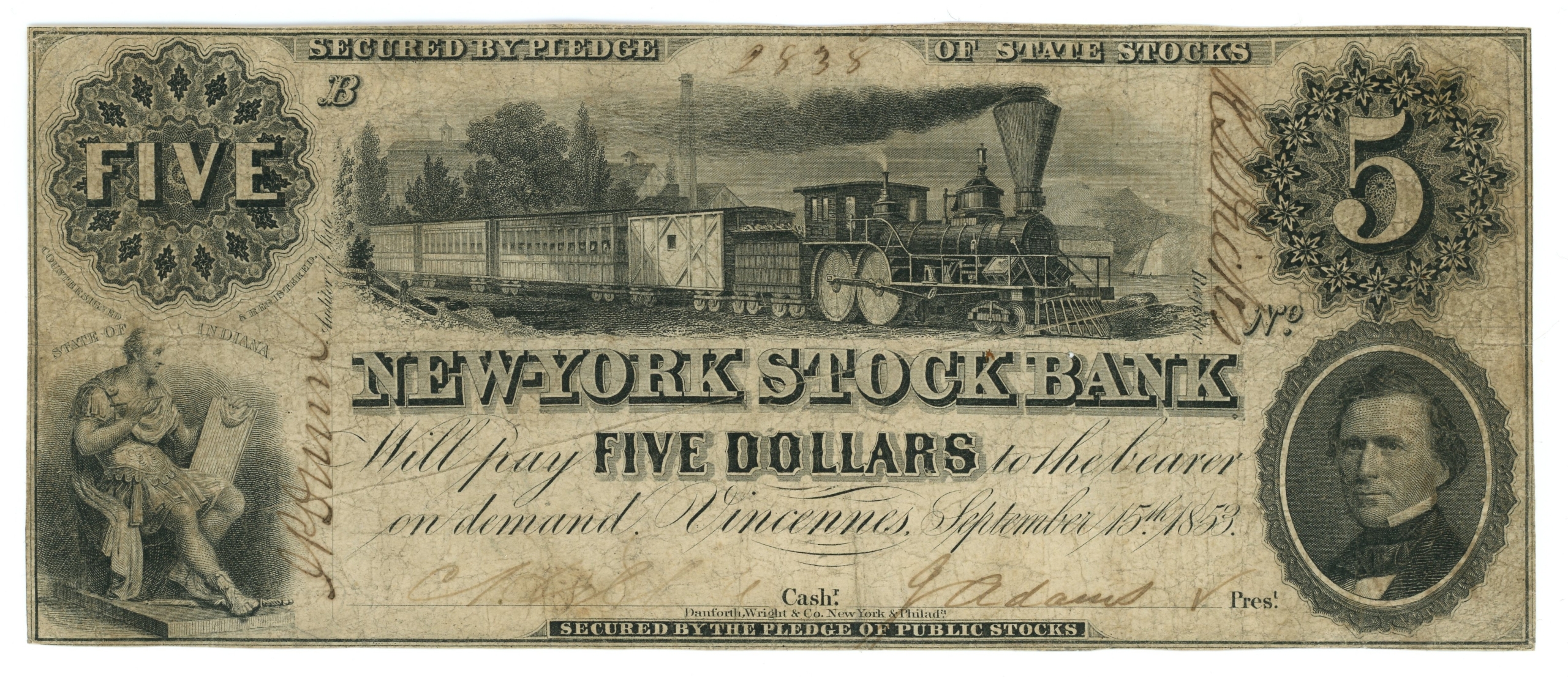 Haxby 660-G4. Wolka 837-1 (Rarity 6). Note has pinholes. Internal slit in the right “5”. Previously hinged.