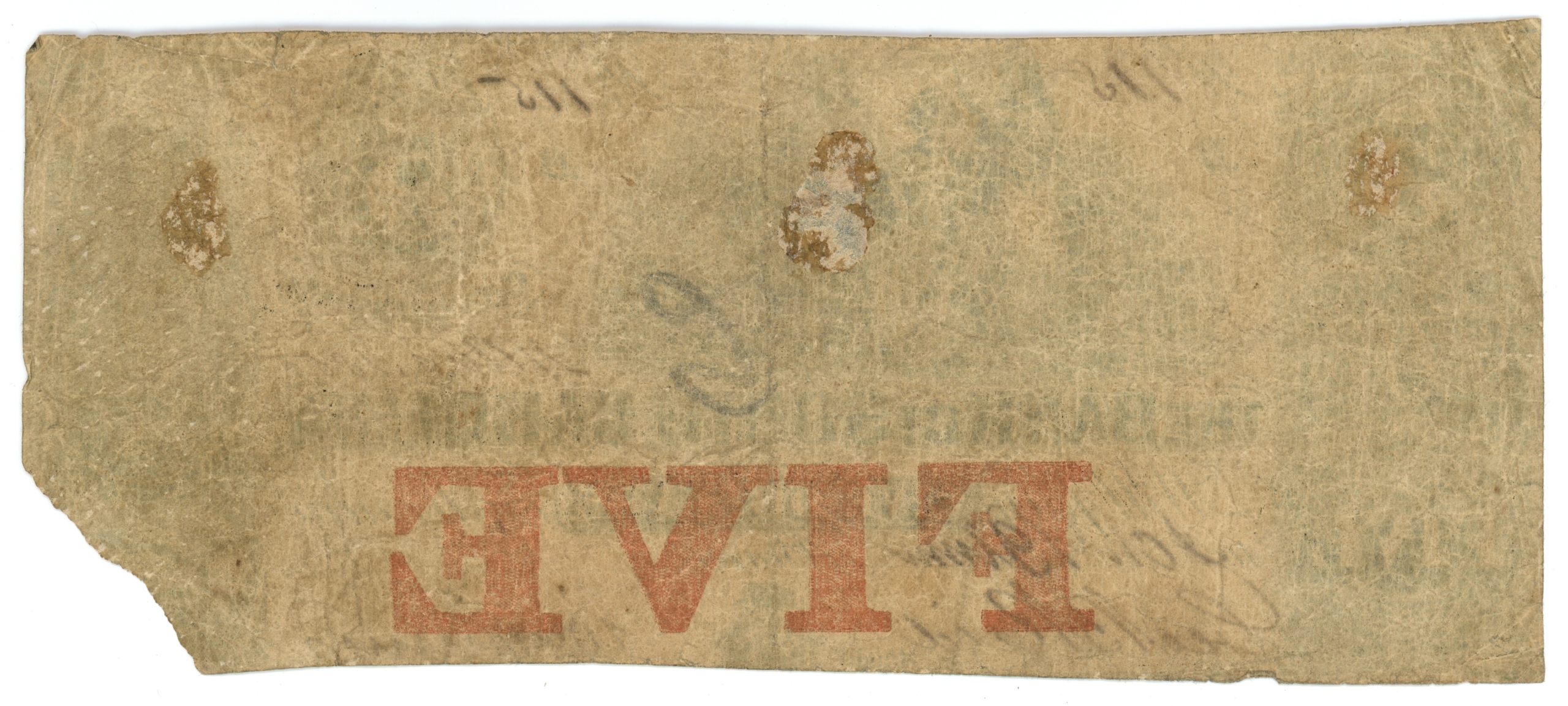 Bottom right corner missing. Previously mounted. Adhesive residue on the back of the note. Note has pinholes.