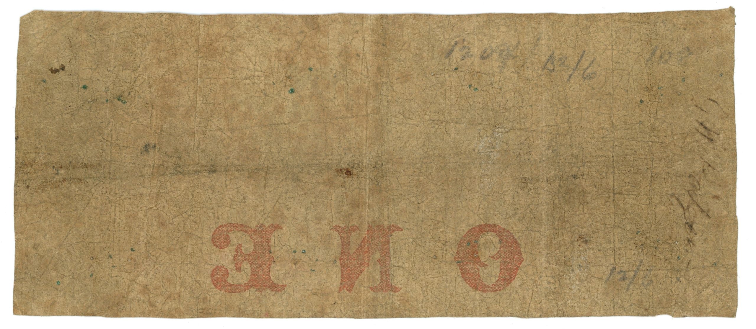 Haxby ME260-G2a. Note has stains and pinholes. Annotations on the back of the note.
