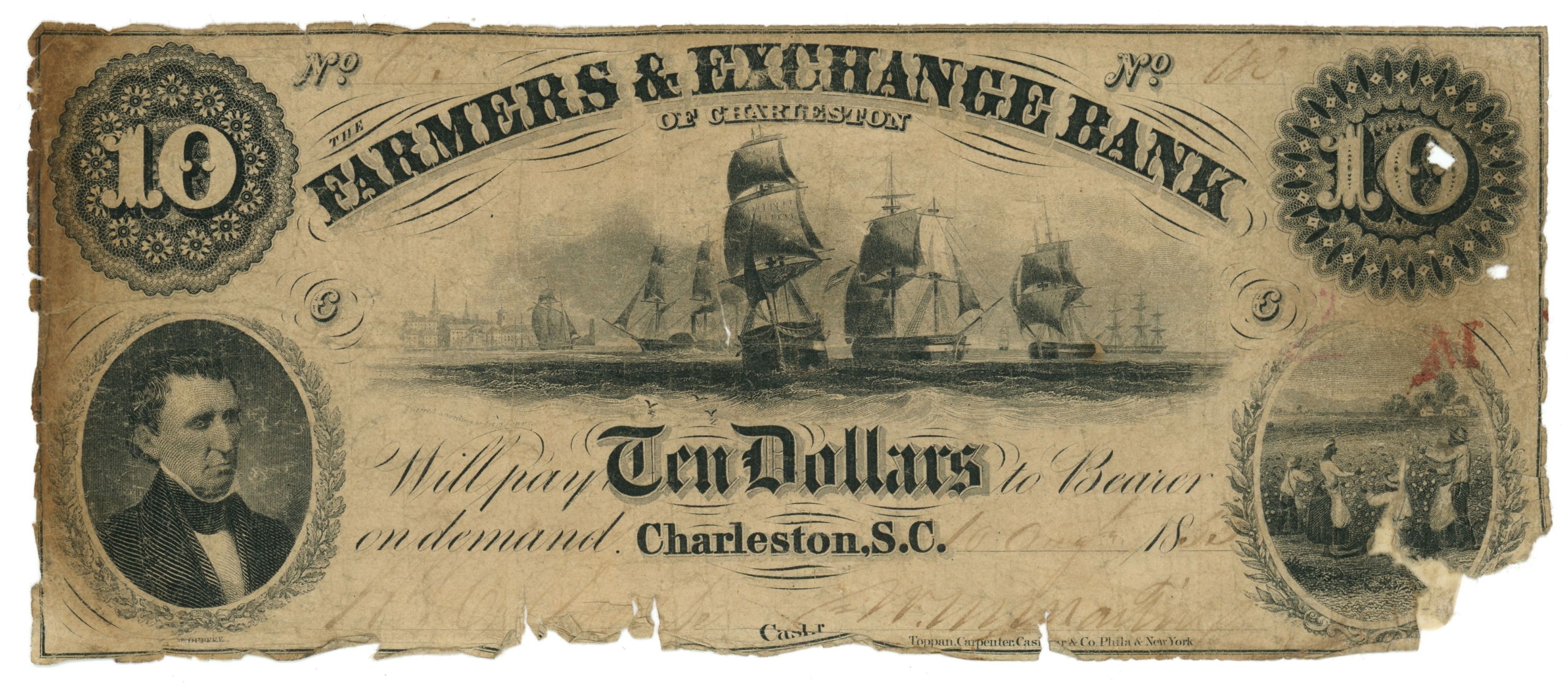 Edge tears/slits. Internal slits as well. Bottom right corner missing. Note has holes.
