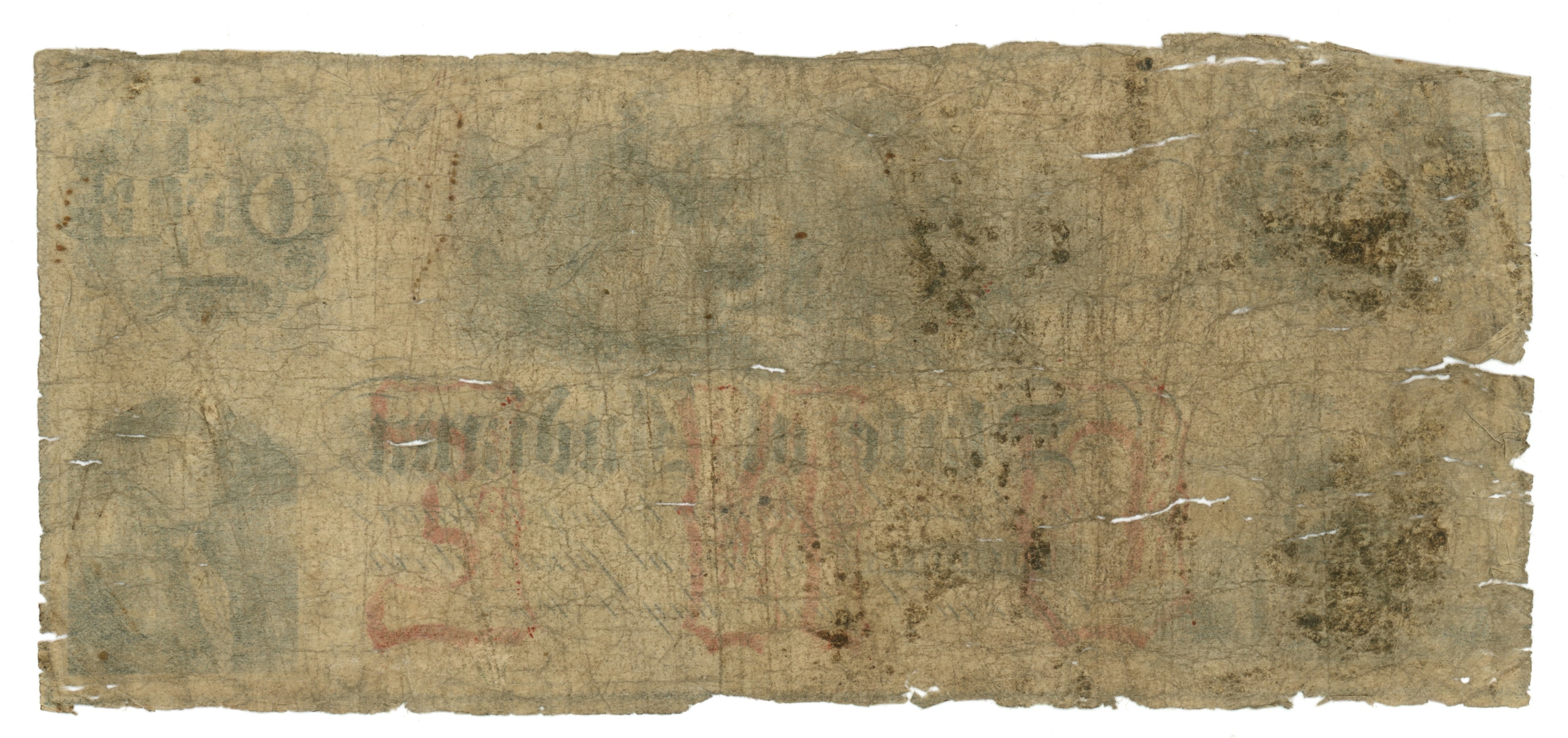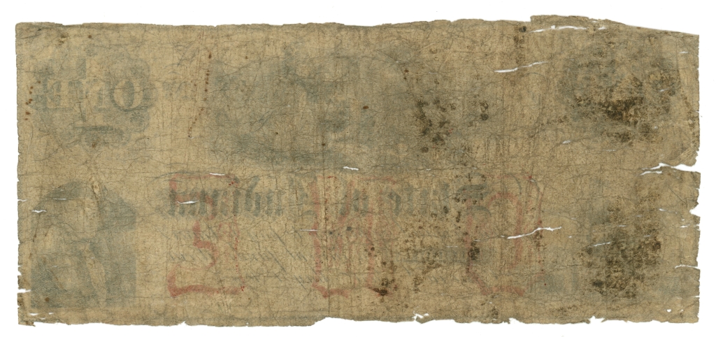 Wolka 249-2 (Rarity 7). Many holes/internal tears. Hinge residue on the back. Note is fragile.