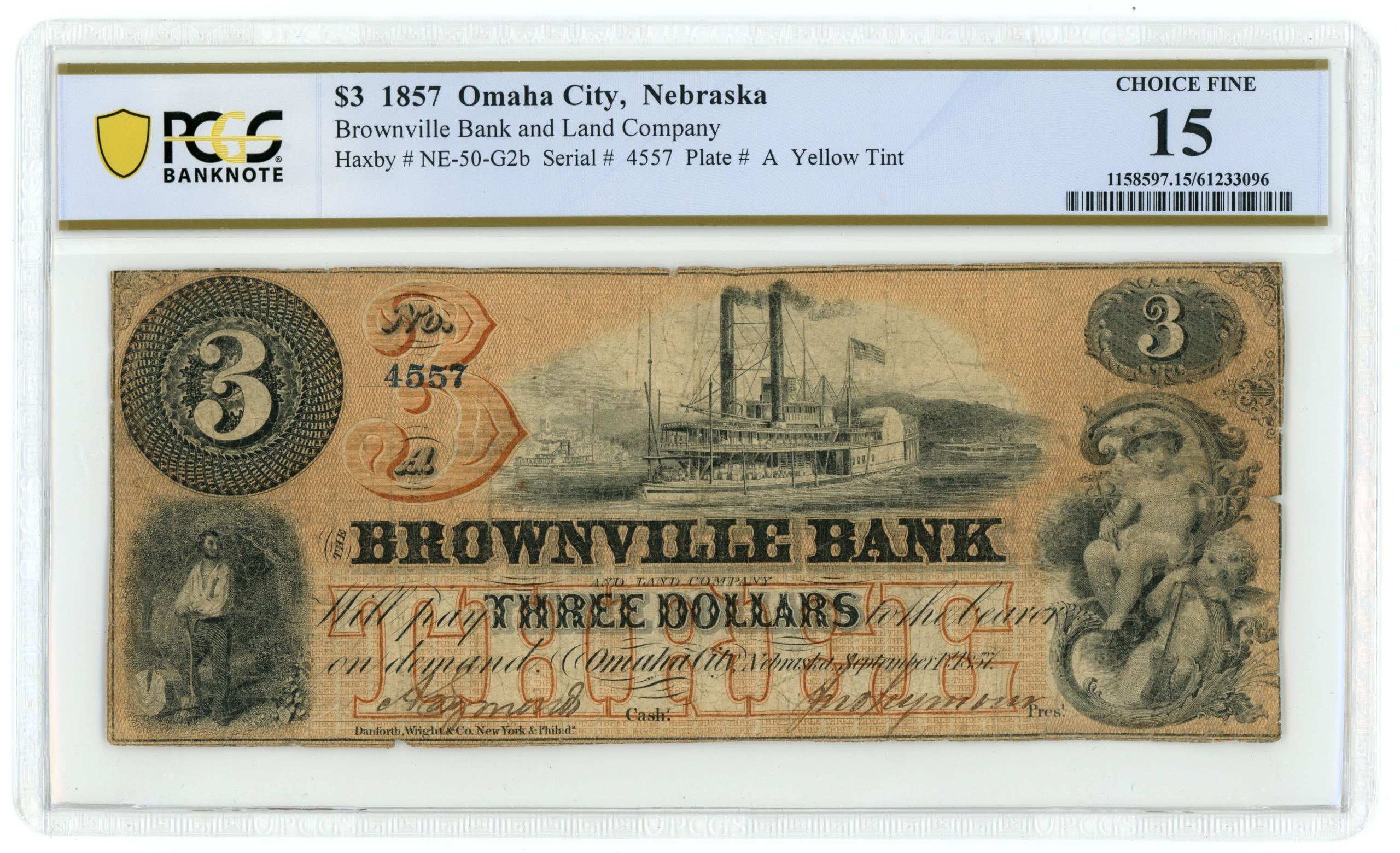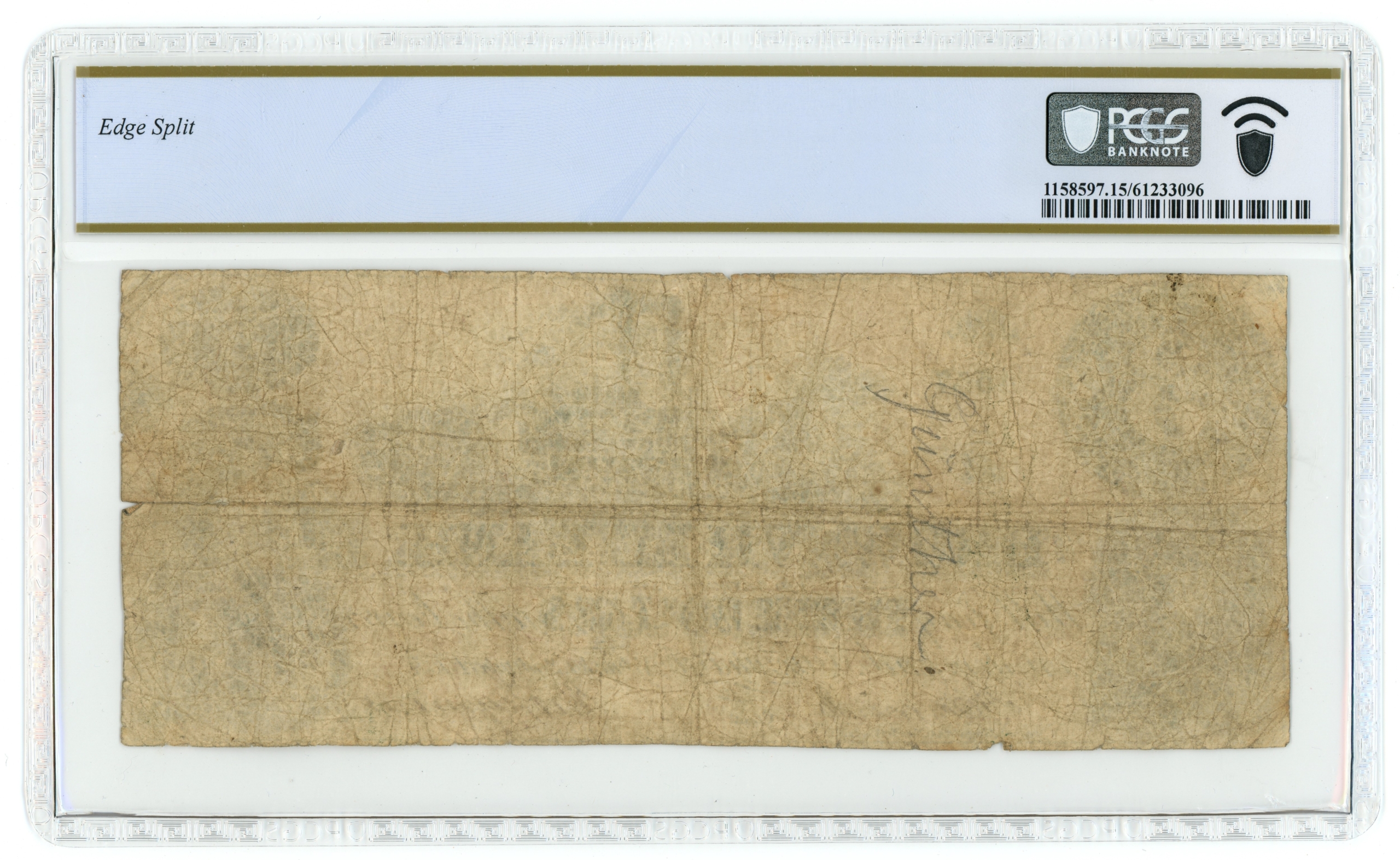 Issued note. Yellow tint. Haxby NE50-G2b. Edge split notated by the grading service.